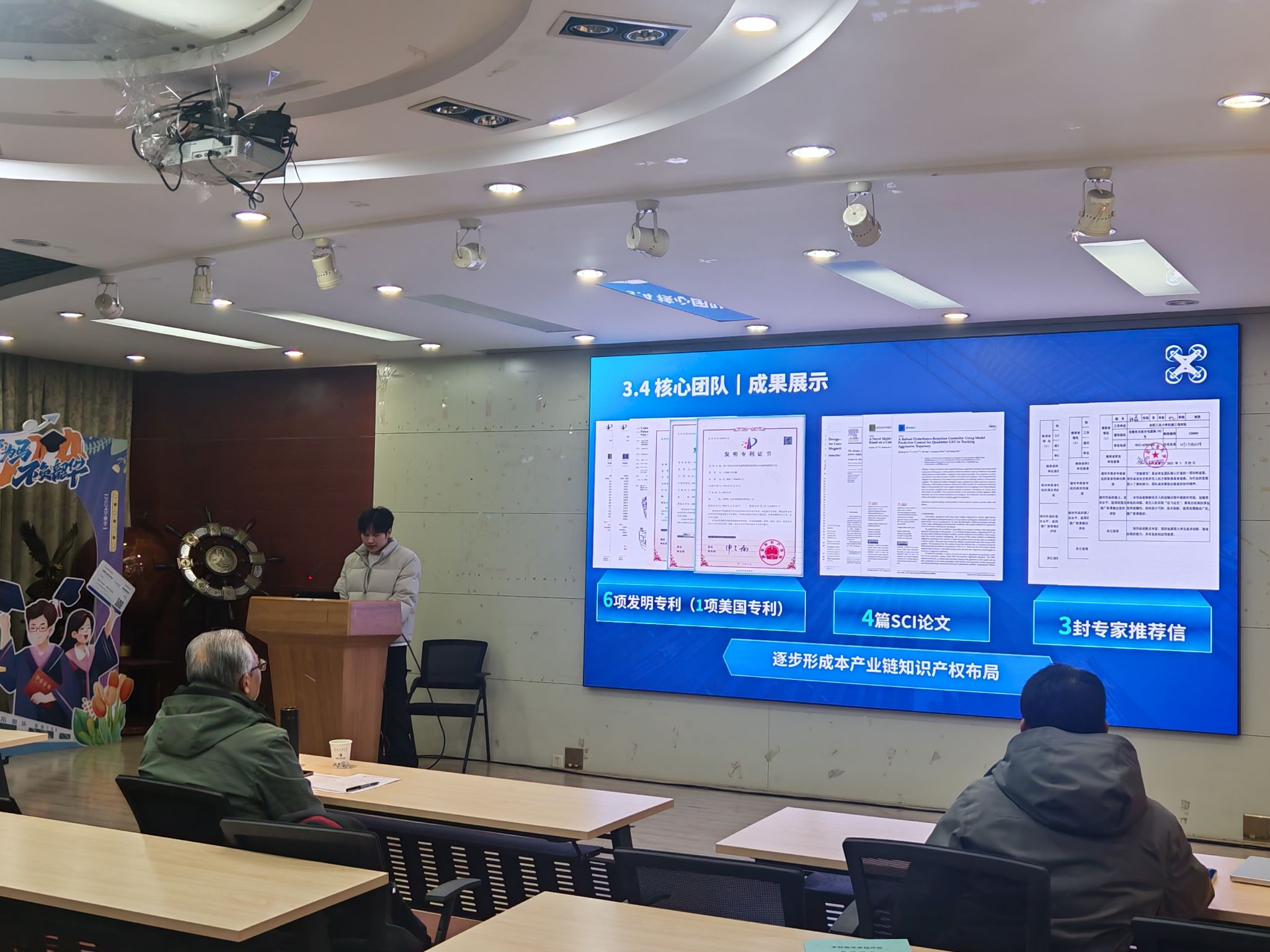 决赛现场,各队伍结合社会发展背景,充分展示了项目成果及未来规划,各评委老师也相应给出了指导性的建议与评价。其中,“穗火薪能——科技云台守护粮食安全,智慧干燥赋能农业振兴”“深澜臻测——高分辨率宽带声学全息成像系统”等项目,表现亮眼,引起激烈讨论,评委老师对其功能实现方式、产品发展规划等方面提出了专业建议。本次比赛也充分展现了我院学子扎实的项目素养和创新能力。