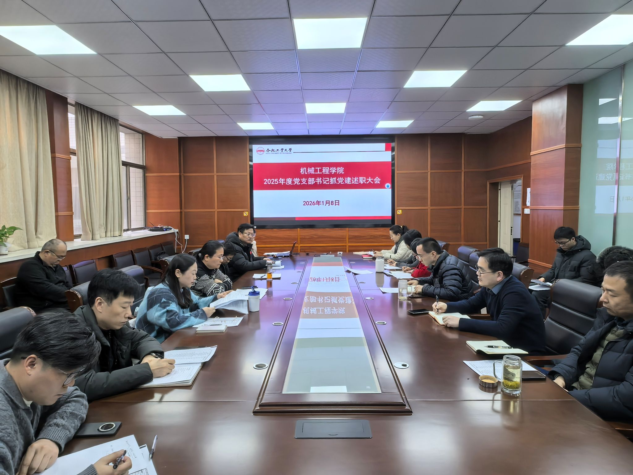 1月8日下午,必赢线路检测3003党委召开了2025年度党支部书记抓党建述职大会,会议由学院党委书记祖磊主持,学院处级领导干部、党委委员和全体党支部书记参加会议。