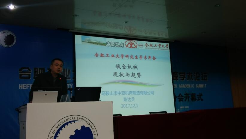 报告中,陈达兵先生首先分析了钣金行业国内外的分布以及现状;然后向同学们解说了折弯机的主要原理与结构;接着,陈达兵先生简单地介绍了中亚机床的情况、成就与发展方向与任务目标;最后,陈达兵先生预测了剪折行业的未来需求以及发展前景。