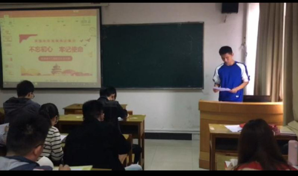 按照“不忘初心,牢记使命”主题教育方案要求,会议主题围绕“不忘初心,牢记使命”,分专题开展交流。首先,支部书记唐陈乐总体介绍了本次学习成果交流会,并结合自身讲述自己学习的收获及感悟。随后,各个学生党员依次发言,相互交流,分享学习心得和体会。唐陈乐书记表示,本次会议的目的主要在于通过交流互动,检验党员们的学习情况,在分享学习成果的过程中,帮助学生党员共同提高党性修养。