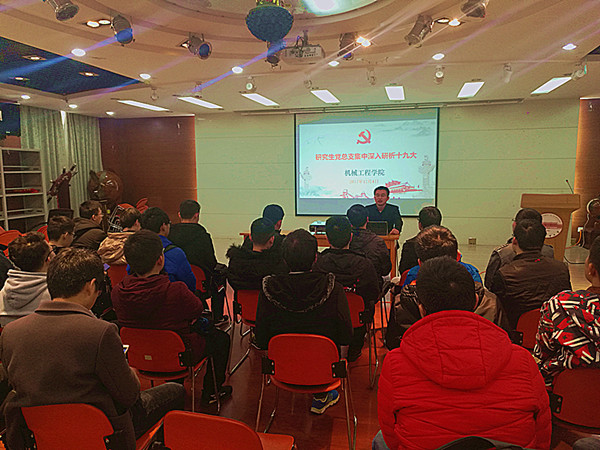首先研究生党总支书记吴其林向参会人员详细解读了《习近平:决胜全面建成小康社会,夺取新时代中国特色社会主义伟大胜利--在中国共产党第十九次全国代表大会上的报告》,并带领各支部书记深入研读报告,他表示党的十九大是在全面建成小康社会决胜阶段、中国特色社会主义进入新时代的关键时期召开的一次十分重要的大会。十九大报告及其相关会议的会议精神是我们党进入新时代、踏上新征程、书写新篇章的政治宣言和行动纲领。新思想、新使命,给我们创造了新机遇、新条件,提出了新课题、新要求,也进一步指明了前进的新方向。作为一名研究生支部书记,我们要认真深刻的学习党的十九大会议精神,把握时代的发展趋势,做时代的弄潮儿,成为一名合格的研究生支部书记,为学校、社会贡献自己的力量,为实现中华民族伟大复兴的中国梦而努力奋斗!