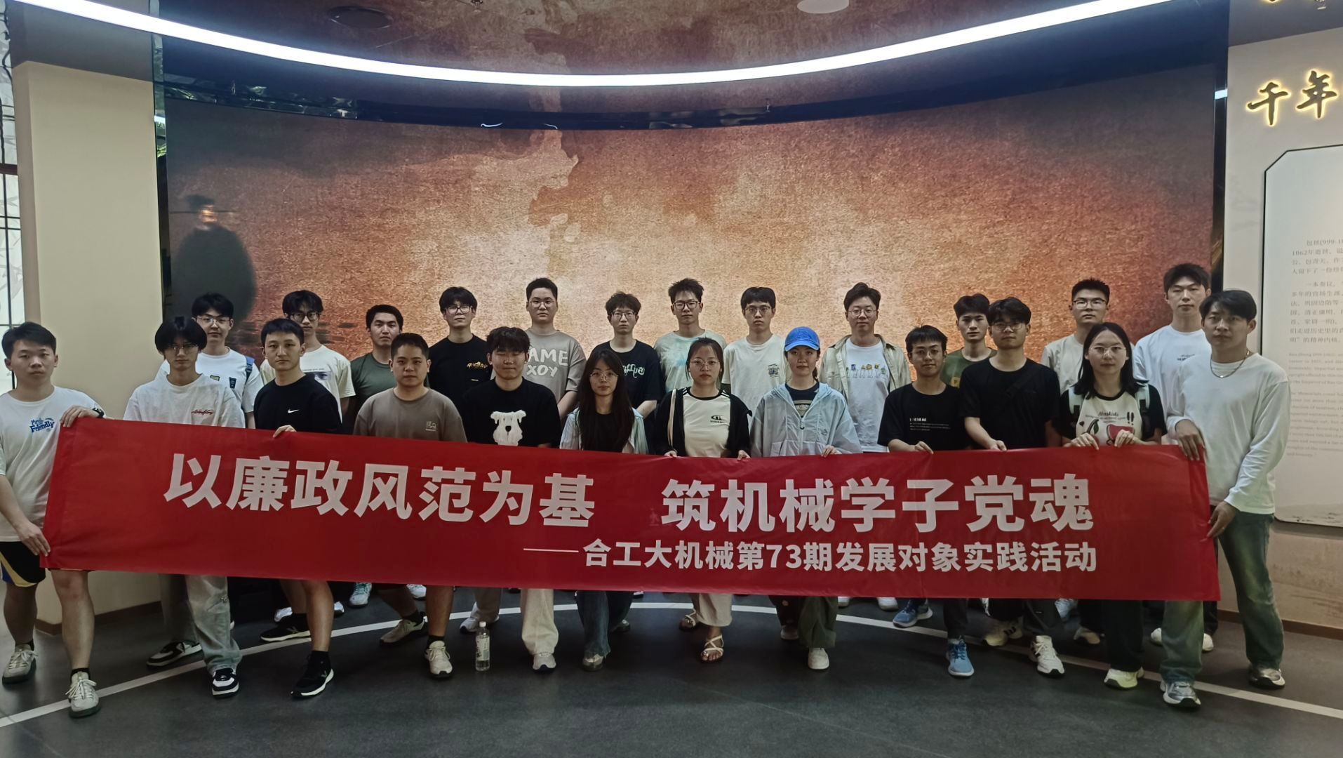 为深入贯彻落实习近平总书记关于“用好红色资源,传承好红色基因”的重要指示精神,必赢线路检测3003积极创新思政教育形式,通过红色文化实践强化学生廉政意识,厚植清廉文化根基。5月7日,学院组织第73期发展对象班学员前往全国廉政教育基地——包公园,开展“以廉政风范为基,筑机械学子党魂”主题实践活动,引导青年学子从历史中汲取廉洁力量,涵养新时代青年品格。