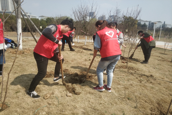 14日下午,40余名志愿者们事先学习了种植注意事项,分工明确,携带着水桶、铁锹等工具,来到提前申请规划好的区域,随后的3个小时,挖坑、种树、埋土、浇水,亲手种植了30余棵樱花树。并在树苗上挂上了写有自己姓名和祝福的红丝带,并相互约定日后做好继续养护。