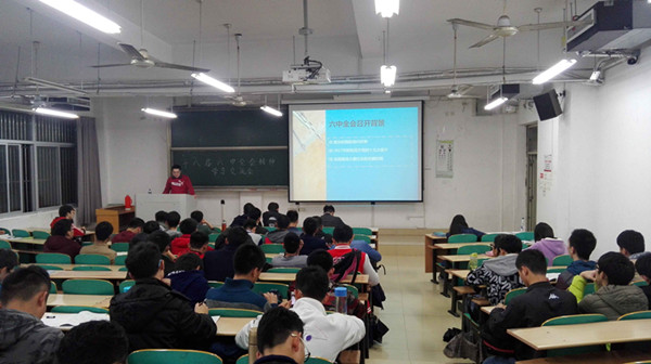 11月21日晚七点,必赢线路检测3003团总支在翡翠湖校区五教101举办了十八届六中全会精神学习交流会。本次交流会由机械学院团委学生副书记徐力群担任主讲人,该院第4期推优团员及第55、56期入党积极分子参加了本次学习交流会。