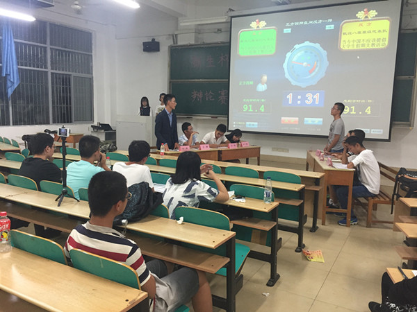 本次新生杯辩论赛共有四轮,各班辩手都将为最终的荣誉奋力拼搏。当晚在3教106、201、204举行了6场预赛,12个班级队伍,有8队挺进下一轮更加激烈的四强赛。辩论场上,双方辩手旁征博引,进行激烈的思想交锋。最后评委的现场评论更是让同学们受益匪浅。