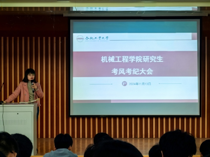 为了进一步严肃考风考纪,11月13日下午,我院在机械楼214召开两场2024级新生“研究生考风考纪”大会。本次大会由研究生辅导员侯静主讲,2024级全体研究生参加了此次会议。