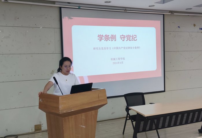 会前,研究生辅导员范选娇带领学员们逐章逐条学习了《中国共产党纪律处分条例》,引导同学们认真学习领会新《条例》的精神实质,提高政治站位,用党的纪律严格规范自身行为,切实起到先锋模范带头作用。
