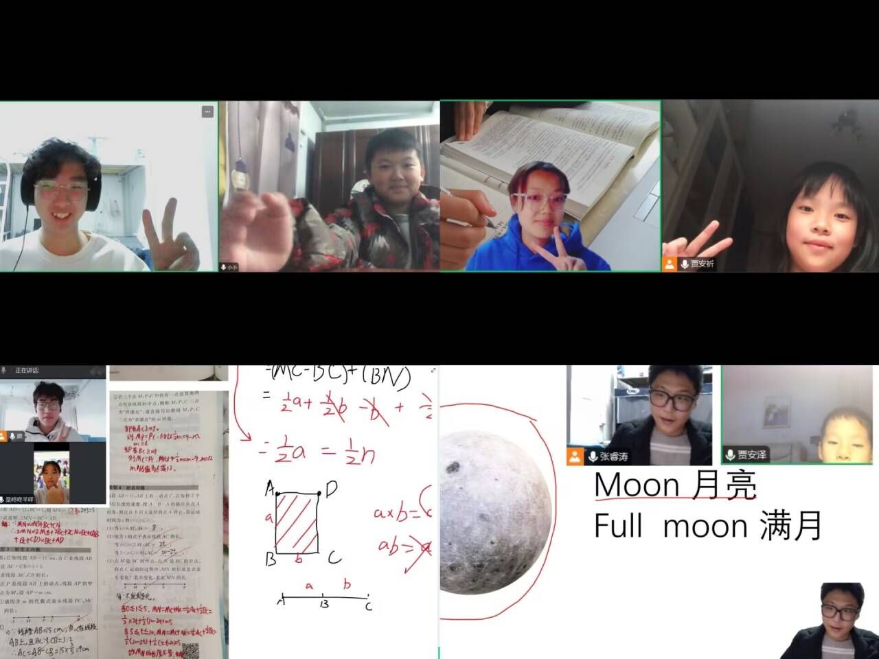活动前,志愿者们首先确定自己要对接的小朋友,并取得家长的联系方式,与家长进行沟通交流。沟通交流之后,志愿者们便投入到备课工作之中。到了约定的上课时间时,志愿者们便开始在腾讯会议平台上上课。志愿者们或以精美的幻灯片展示课程要点,使教学过程妙趣横生;或以腾讯会议白板细致剖析知识脉络,让讲解清晰明了;抑或借助丰富的网络资源,为孩子们构建起更为全面的知识大厦,拓宽其知识视野。他们的教学科目丰富多样,涵盖数学、英语、语文、美术、音乐。志愿者们不仅传授基本知识,还耐心辅导功课、答疑解惑。每一次课程都如知识的宝库,让小朋友们收获颇丰。在一次次按约定开展的课程进程中,小朋友们不仅收获了愉快的经历,也提升了自己的自律能力。