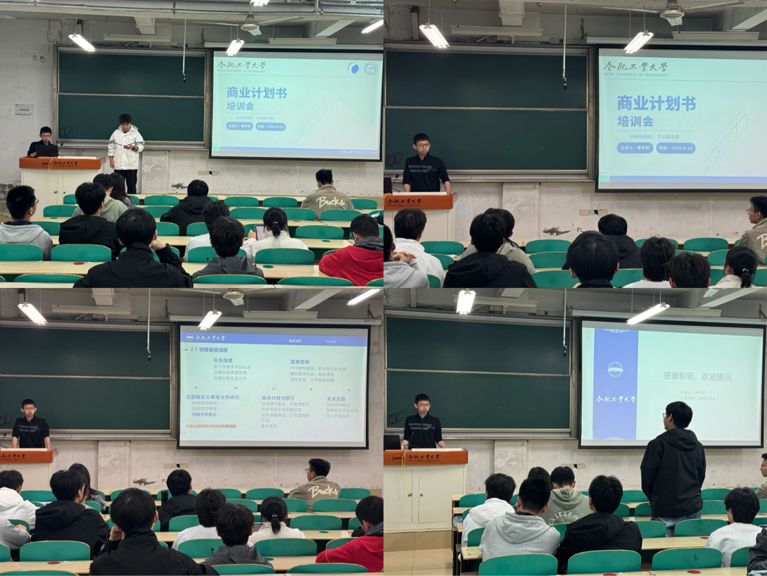 培训会上,黄宇轩首先对创业类竞赛及其备赛流程、队伍组建进行了简单介绍,接着结合自身竞赛经历从商业计划书的定义、商业计划书的结构、章节内容概述及商业计划书的整合与美化四个方面展开,细致地介绍了商业计划书的撰写要点,并鼓励同学们进行跨专业合作,为同学们未来组建团队提供了帮助。最后,主讲人强调了商业计划书的撰写注意事项并鼓励同学们保持初心,以赛促学。在提问环节,同学们积极提问,现场气氛活跃。