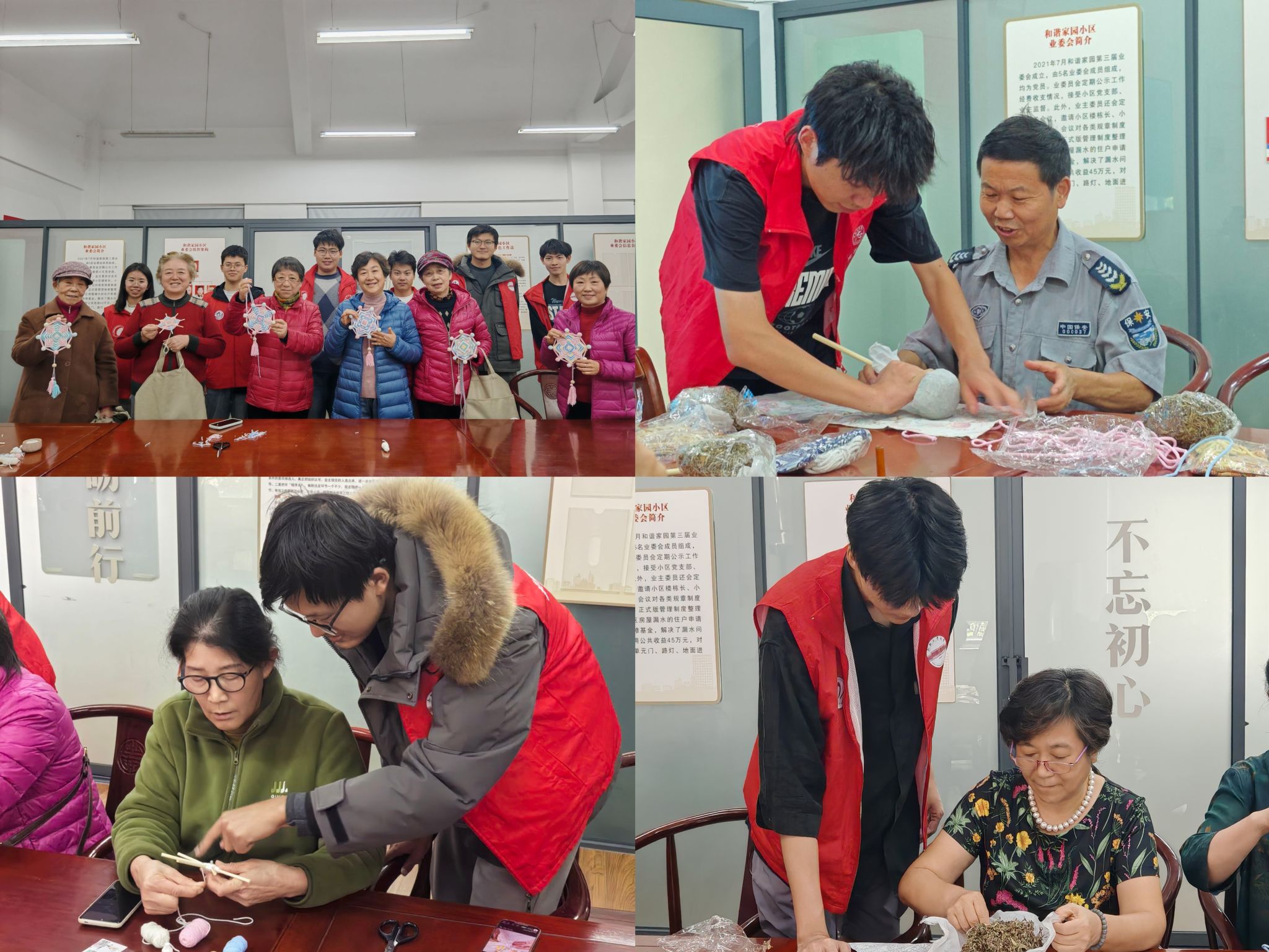 12月10日,志愿者们走进书香社区书香社区和谐家园小区居民活动室,开展“银发指尖生花,编织岁月芳华”主题手工编织活动。志愿者们带领老人们体验曼达拉编织,在看到复杂的基线后,老人们流露出畏难之心,不相信自己可以完成,但在志愿者们的耐心引导下,老人们逐渐找到编织诀窍,成功地完成了曼达拉编织,最终纷纷骄傲地展示亲手完成的作品,脸上洋溢着幸福满足的笑容。志愿者们的贴心协助与真诚陪伴,让老人们在指尖创作中感受乐趣,在互动交流中收获温暖,活动室中满是欢声笑语。