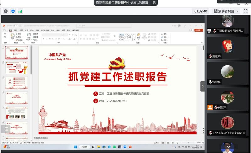 会上,参加线上答辩的13位支部书记按照事先顺序进行了述职分享。各位支部书记按照抓党建的八项重点工作,详细介绍了个人抓党建履职情况、支部取得的成绩和存在的不足,以及支部今后努力改进的方向和举措。