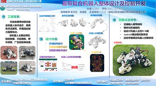 钱宸同学的参赛作品《机械臂无支撑3D打印系统设计》,来源于2019年国家级大学生创新创业项目,依次设计了混合切片算法与路径规划算法,搭建了整体系统并进行了实物打印,验证了通过机械臂托台式的结构完成无支撑的3D打印模式的可行性。刘潇翔同学的作品《履足式复合机器人整体设计及控制开发》,提出了一种基于物联网的多地形适应的四足履带可变形复合式机器人的设计方案,能够在四足机器人与履带车两种形态之间进行快速切换,具有非常高的灵活度与环境适应能力。