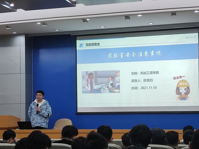 11月10日晚7点,我院研究生会联合汽车与交通工程学院、化学与化工学院学院研究会开展实验室安全操作交流会。本次交流会以“坚持底线思维,筑牢安全共识”为主题,共有150余名2021级研究生新生参加。