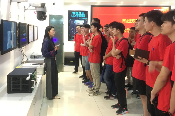 在海康威视安徽业务中心产品经理的讲解演示下,同学们对该企业各类领域的摄像头、门禁、LED显示屏及报警装置等产品的原理、作用及应用有所了解。同学们从硬件到软件发展的历程中认知企业发展,感受“专业,厚实,诚信”理念。