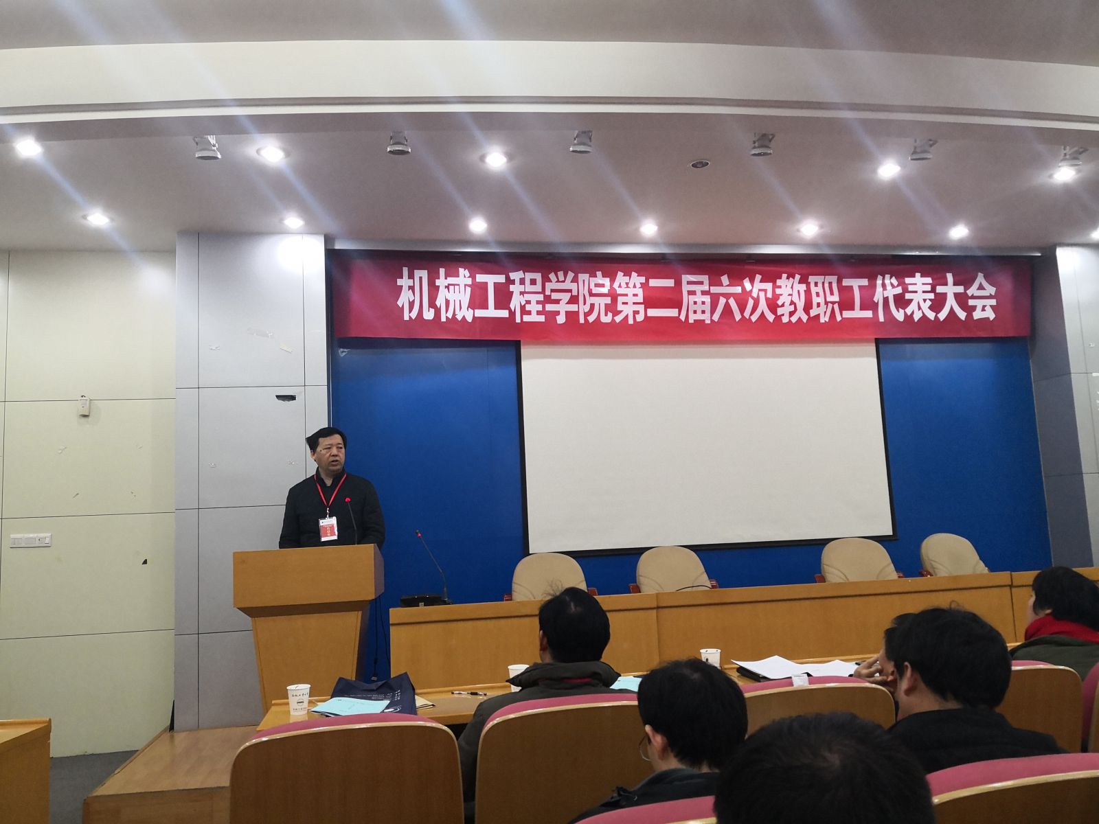 2019年1月9日下午,必赢线路检测3003第二届第六次教职工代表大会在格物楼二楼学术报告厅举行。学院教代会代表45人出席会议。院党委书记韩江主持会议。