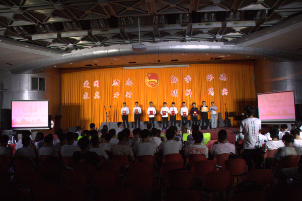 校团委相关负责人向全体与会学生展现出的良好精神面貌表示了肯定,向受表彰的先进集体与个人表示热烈的祝贺。并结合习自身的成长经历,希望同学们,不负韶华,珍惜大学时光,希望同学们要爱国,要爱校;要励志,树立远大的目标,为国奉献;要求真,做有思想有品德的新时代青年;要力行,学以致用,积极参加实践活动。