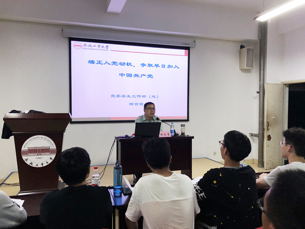 报告中,田合雷老师以中国共产党的成立为起点,为同学们讲述了党的发展历史,并从时代背景角度分析,为大家详细阐述了为什么说“中国共产党的建立是历史的必然、是历史选择了中国共产党”;随后,田老师还就如何树立正确的入党动机等问题,深入浅出地为同学们讲解了树立正确的入党动机的重要性。同时,他还要求积极入党的同学,要明确党员基本条件,并对照党员应具备的条件,在日常学习、生活和工作中不断规范自己的言行,从身边小事做起、从自觉带头遵守各项规章制度做起,争取早日加入党组织。