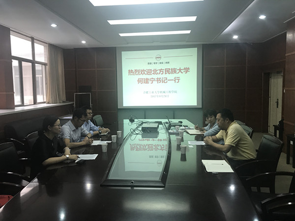 座谈中,韩江书记代表学院热烈欢迎何建宁书记一行的到来,他向来宾介绍了我院悠久的办学历史和深厚的学科背景及专业特色,希望北方民族大学的同学在合工大一年的学习生活中能够收获知识,学习技术,也将北方民族大学的优秀的学生创新实践,学习及管理的经验带到工大。