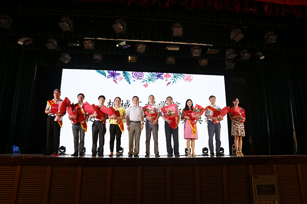 随着晚会的不断深入,终于迎来了历时一个多月、由全体机械毕业生票选出的“最美机械人”——“ 十位最难忘老师”和“品学兼优毕业生”的精彩亮相。老师们在学生献花后也是激动不已,每人用一句话告白机械学子,祝贺2017届机械学子顺利毕业,祝愿他们前程似锦。赵韩、王峰和訾斌分别为“最美机械人”颁奖。