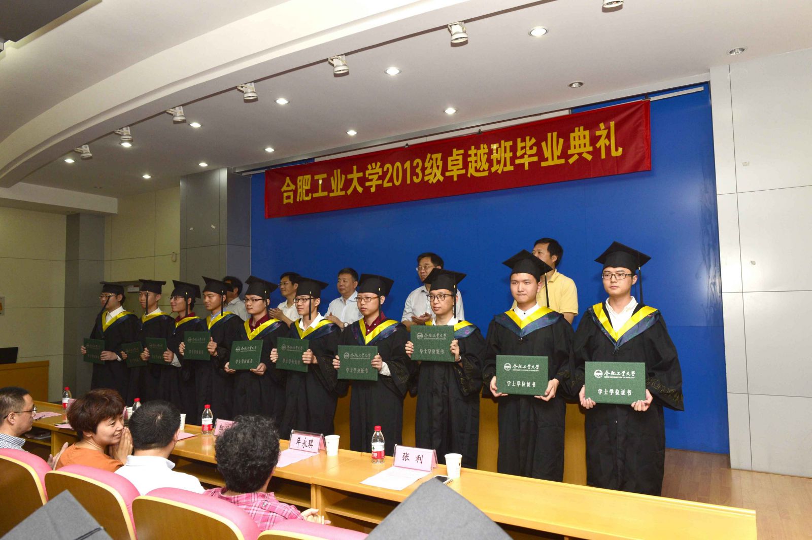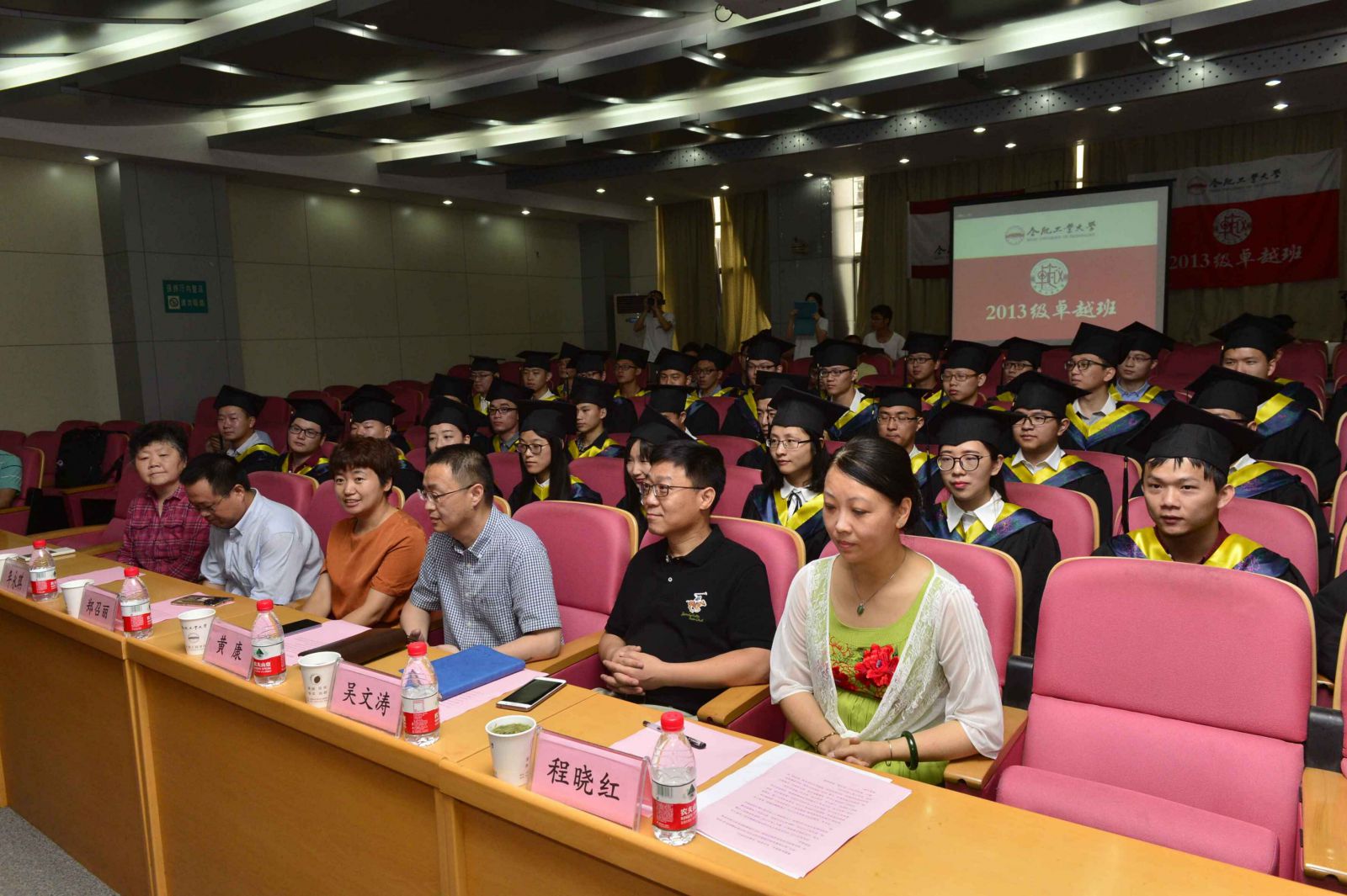 6月19日上午10点,“英才计划”创新班,2013级卓越班在格物楼2楼会议报告厅举行毕业典礼,校长梁樑参加了此次仪式,参加毕业典礼的领导还有教务部部长陈翌庆教授、学工部部长王峰老师、教务部副部长兼创新创业教育中心主任黄景荣老师、必赢线路检测3003党委书记韩江教授、必赢线路检测3003副院长黄康教授、必赢线路检测3003党委副书记兼副院长郑召丽、党政办主任年永琪、创新创业教育中心副主任吴文涛老师、创新创业教育中心主管程晓红老师。