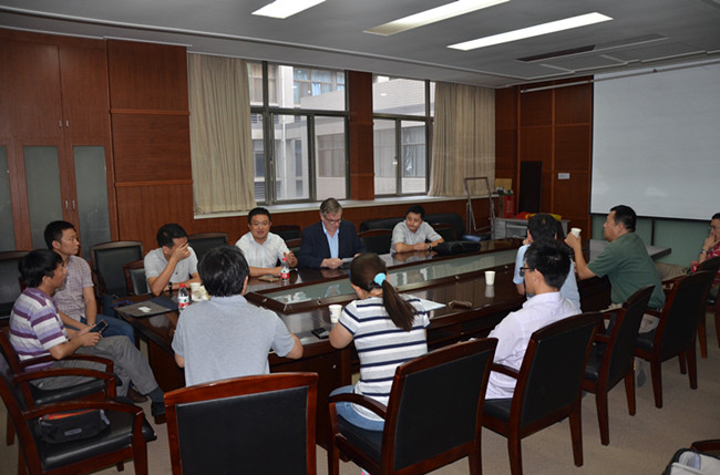 之后,我院丁教授与刘教授来到格物楼308会议室,与德国专家Andrés Kecskeméthy教授一起,与我院有关学院、系所领导和青年教师进一步深入探讨了教学科研方面的事宜。其中丁华锋教授作为中国地质大学机电学院院长,与我院领导达成了两院共同合作,一起搞好中德合作办学项目的共识。(赵萍/文 陈华/图)