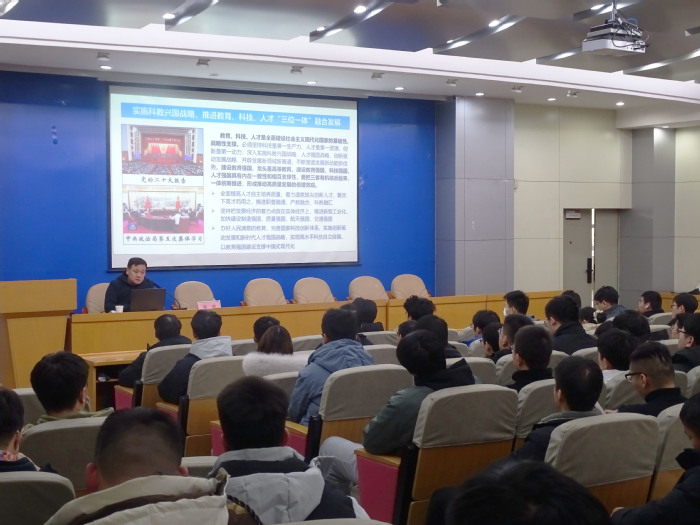 12月26日下午,必赢线路检测3003院长訾斌教授以“施科教兴国战略,推进教育、科技、人才‘三位一体’融合发展”为题在格物楼214报告厅为研究生作专题报告。