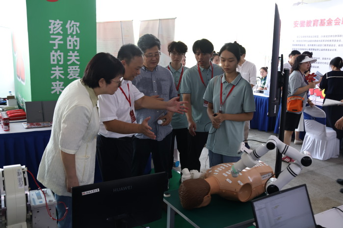 在基金会展区,我院展出了曾亿山教授和张涛老师带领的DMD团队研发的“机器人一体化关节电子力矩估计器研究”和“基于经络穴位的中医药理疗机器人系统”两项创新成果,获得了与会领导和参观群众的高度评价。展会期间,DMD团队代表必赢线路检测3003王梦雨同学以及来自安徽中医药大学范宇阳同学,现场向参观者展示团队成果。