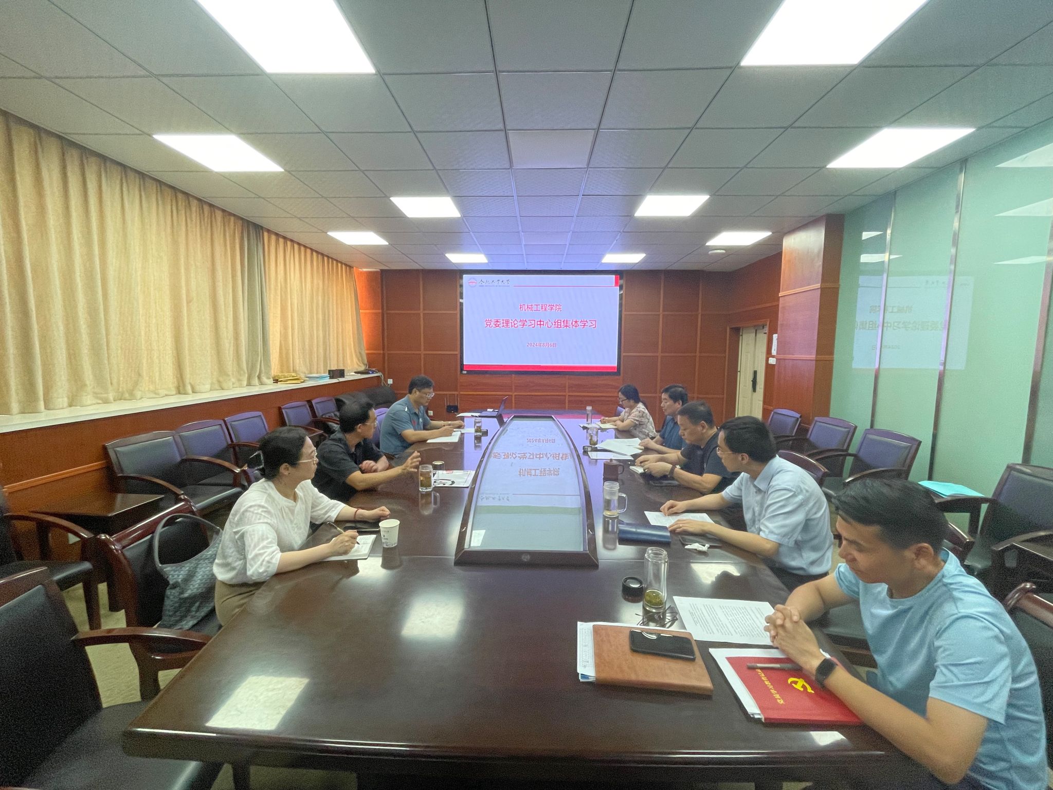 8月6日上午,必赢线路检测3003党委理论学习中心组在格物楼308开展集中学习,学院党委书记张显东主持会议,学院党委理论学习中心组其他成员参加学习。