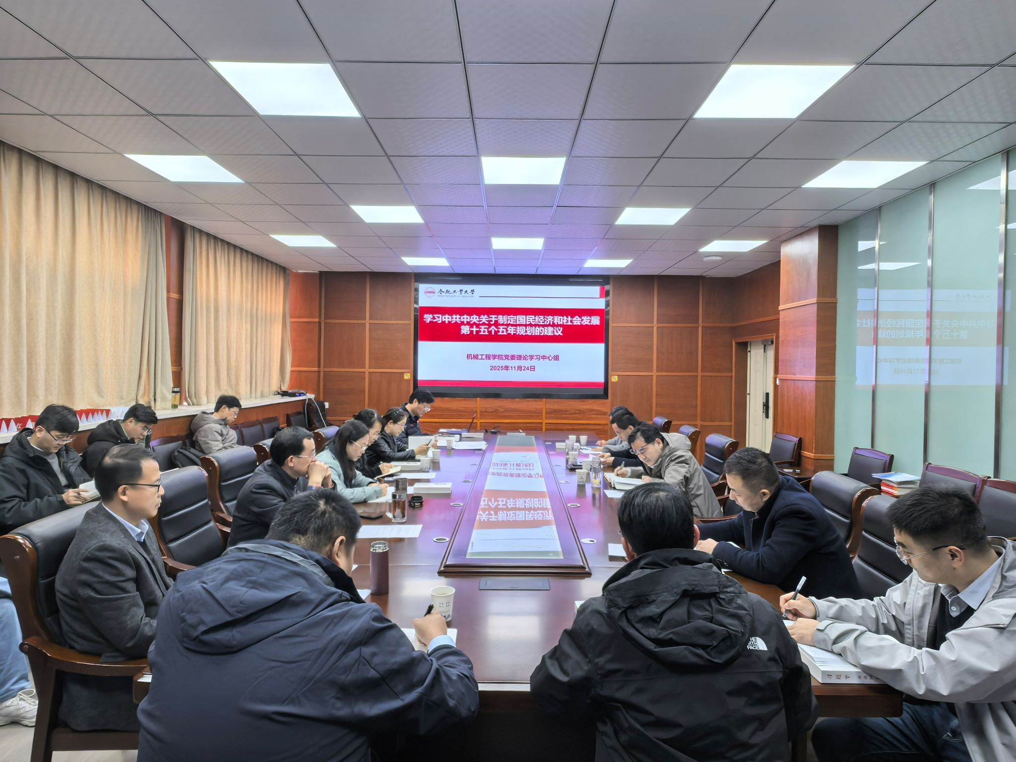 祖磊领学了《中国共产党第二十届中央委员会第四次全体会议公报》《中共中央关于制定国民经济和社会发展第十五个五年规划的建议》《关于<中共中央关于制定国民经济和社会发展第十五个五年规划的建议>的说明》;蔡伟伟领学了习近平总书记在听取海南自由贸易港建设工作汇报时的重要讲话精神、习近平总书记在广东考察时的重要讲话精神、习近平总书记给中国农业大学全体师生回信精神;马培勇领学了《习近平谈治国理政》(第五卷)第四章内容;赵萍领学了《习近平谈治国理政》(第五卷)第十八章第三篇内容;岳峰领学了《教育部等六部门关于加强新时代高校青年教师队伍建设的指导意见》。