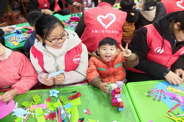 12月9日,学院22名同学来到了合肥市笑童颜康复中心,与听障儿童一起进行了“青春志愿,阳光助残”的手工制作课程。活动中,志愿者们陪同听障儿童们进行了制作毛根小人、弹簧小狗等四个手工活动。在最繁琐的“梦想之手”制作过程中,由于步骤过于繁琐的原因,给孩子的制作带来了困难,在志愿者的引导下顺利完成,孩子们也露出了收获的笑容。