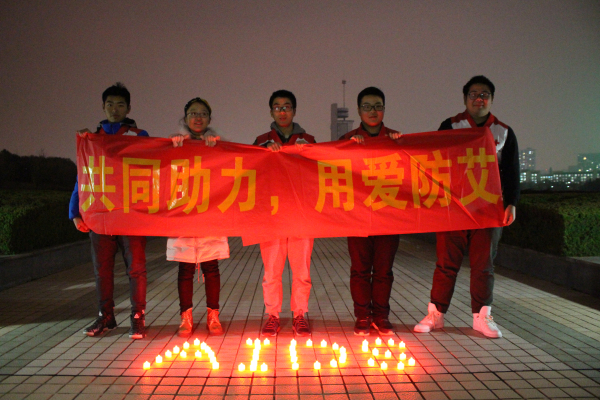 12月17日晚,必赢线路检测3003紫笛社红十字部于翡翠湖校区俪人湖畔开展为“艾”祈福活动。在祈福过程中,志愿者们将蜡烛摆成“HOPE”、“AIDS”和心形等形状,为艾滋病人祈求爱与希望。