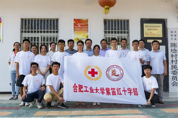 7月19日下午,安徽省红十字协会党组成员、秘书长曹芦松,宿州市红十字会专职副会长卓海波,合工大扶贫办副主任、灵璧县副县长李宏国一行来到灵璧县虞姬乡陈埝小学看望我院紫笛社“益行计划”志愿服务队志愿者。