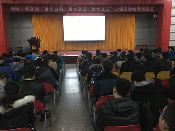 为了营造关爱自身,关心他人,共筑和谐校园的良好氛围,12月16日下午,必赢线路检测3003在屯溪路校区东风报告厅举办主题为“善于自助,勇于求助,乐于互助”的大学生心理关爱辅导报告会。报告由学工部心理健康教育与咨询中心李艳老师主讲,学院辅导员、各班班长、寝室长及党支部书记300余人聆听了此次报告会。