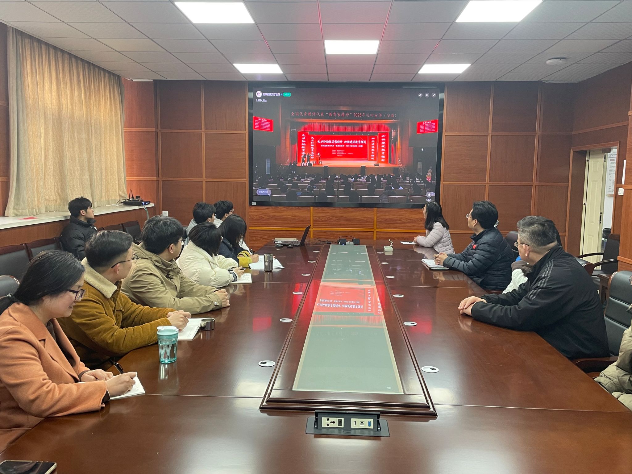 2月27日下午,必赢线路检测3003组织教师在格物楼308会议室集中观看教育家精神2025年巡回宣讲活动。